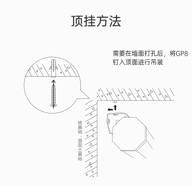 摄像头磁吸供电支架吊装型+底座套装顶装磁吸套件 白色