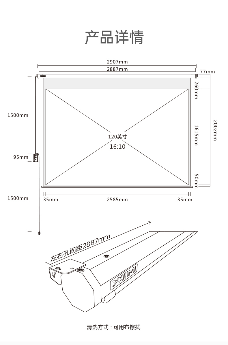 120寸电动幕布,16:10