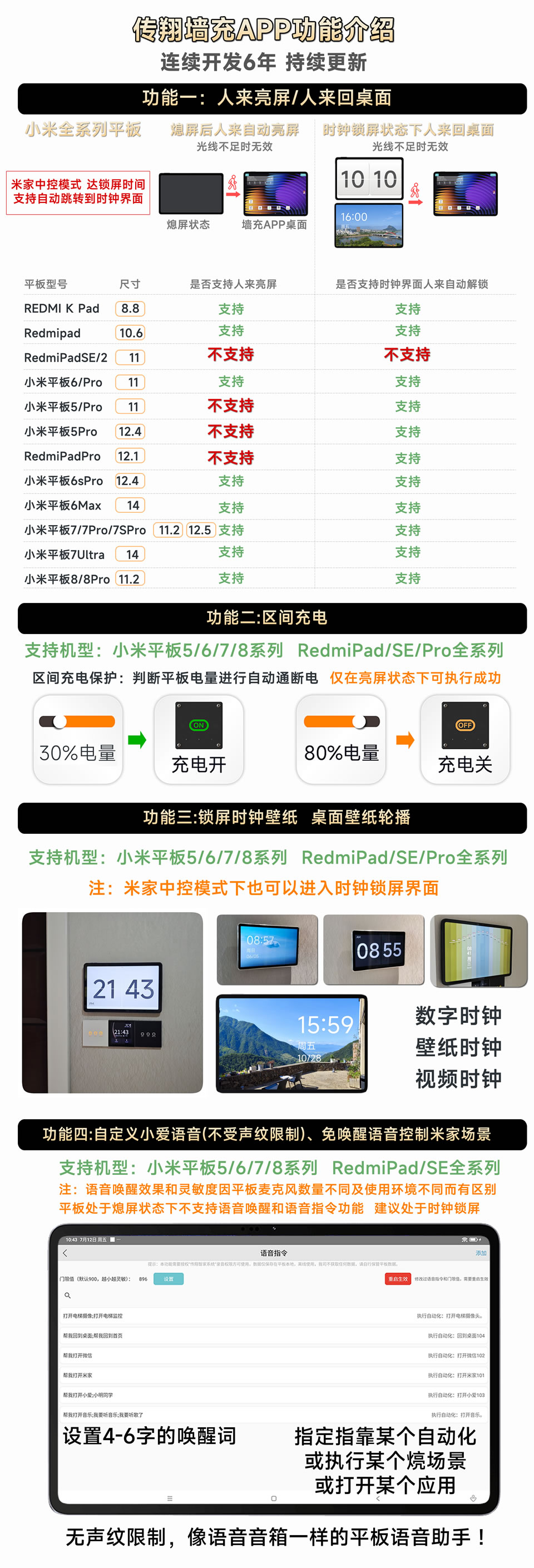 支持11英寸以上平板,Type-C接口,10W无线充电,标准插座厚度,磁吸上墙,86底盒安装,触点式充电