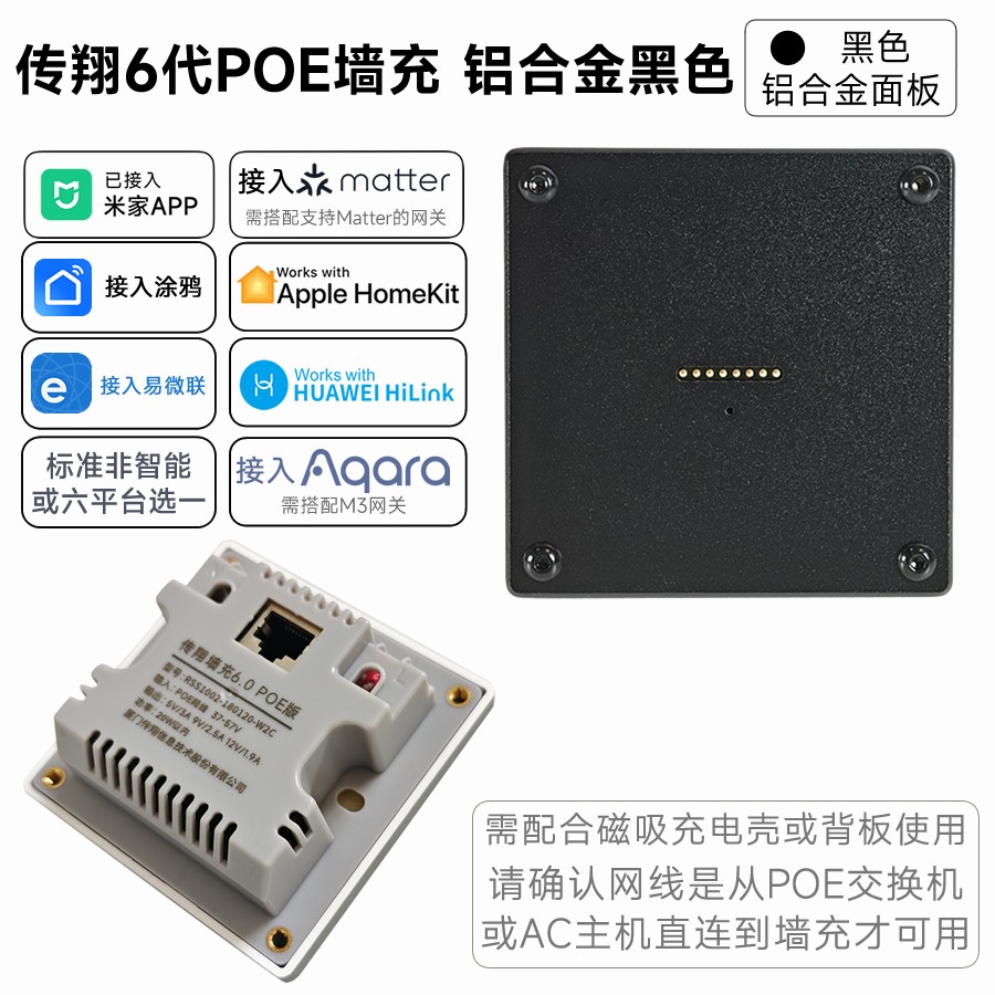 六代墙充塑料黑色接入米家蓝牙Mesh2.0