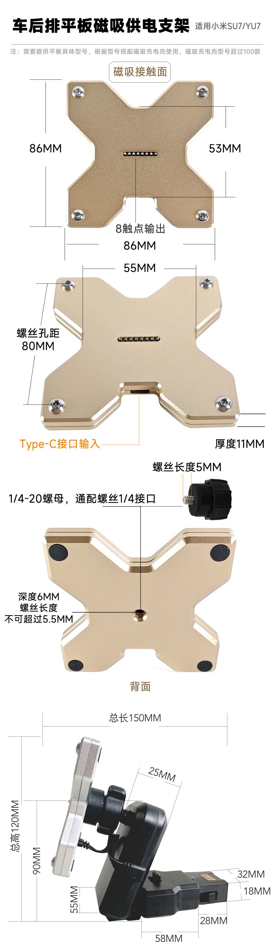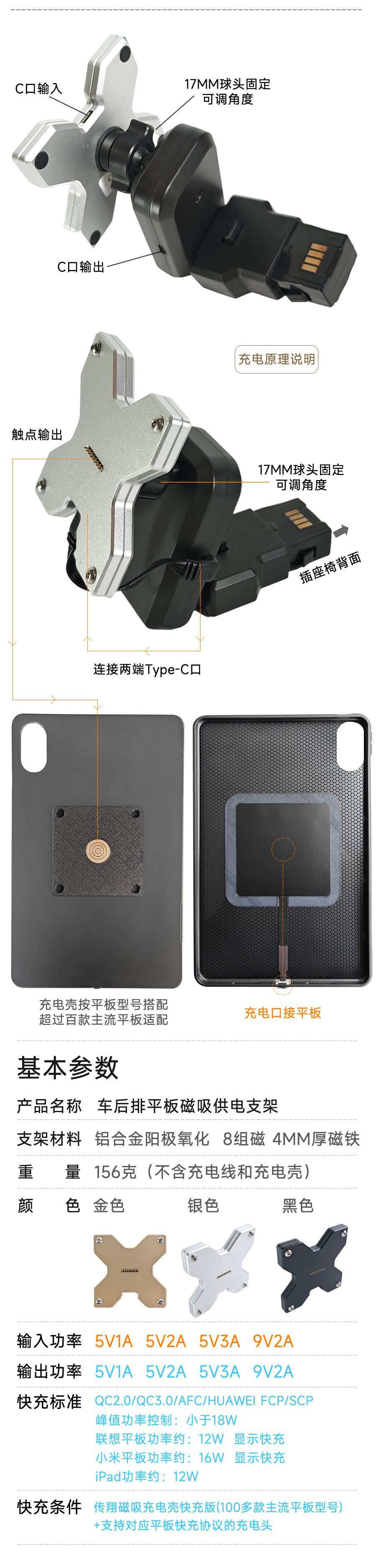 铝合金版平板移动磁吸充电伴侣快充+17MM球头扣黑色