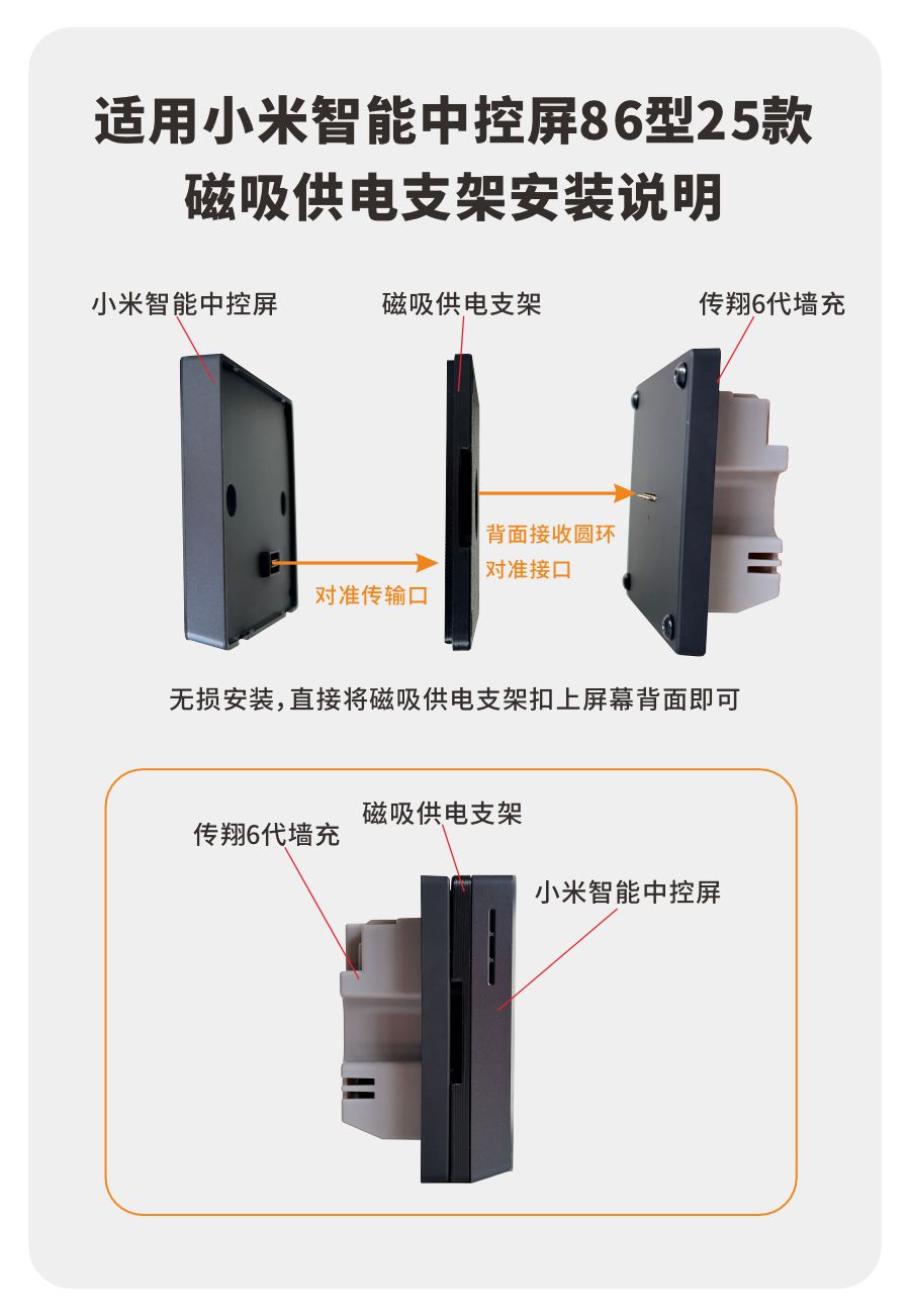 适用小米智能中控屏86型25款磁吸供电支架 不含中控屏 兼容传翔5代6代墙充
