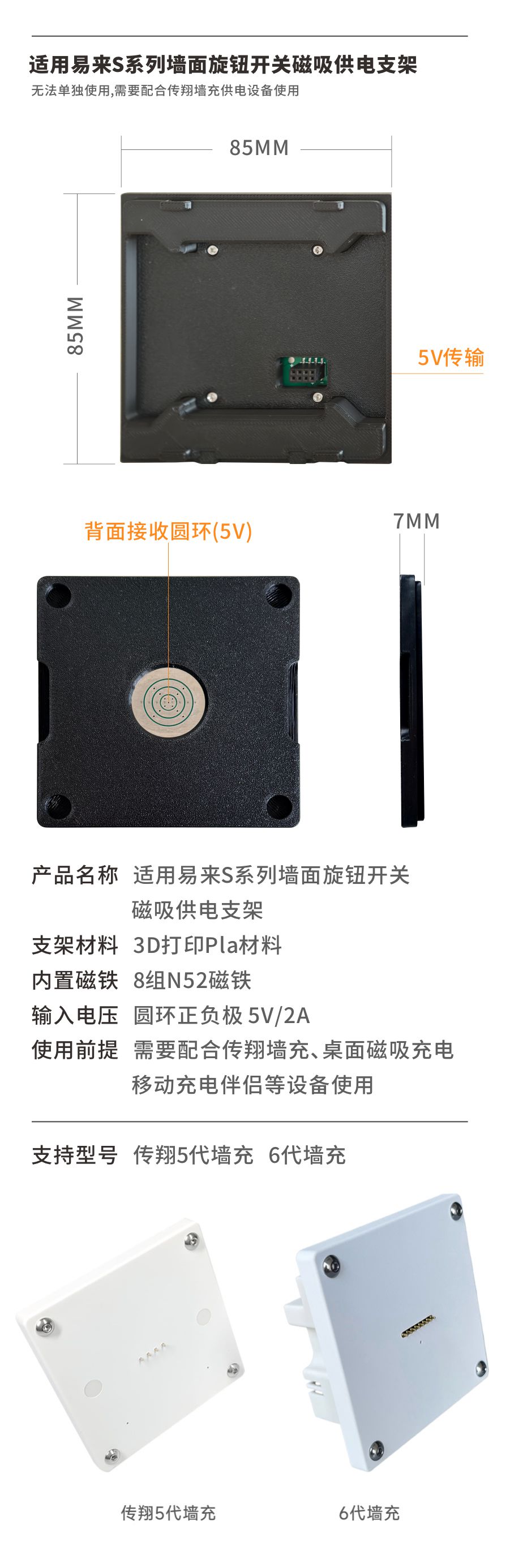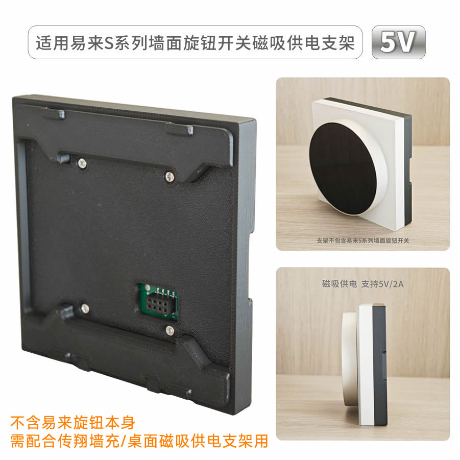 适用易来S系列墙面旋钮开关磁吸桌面支架 不含墙面旋钮开关 兼容传翔5代6代墙充