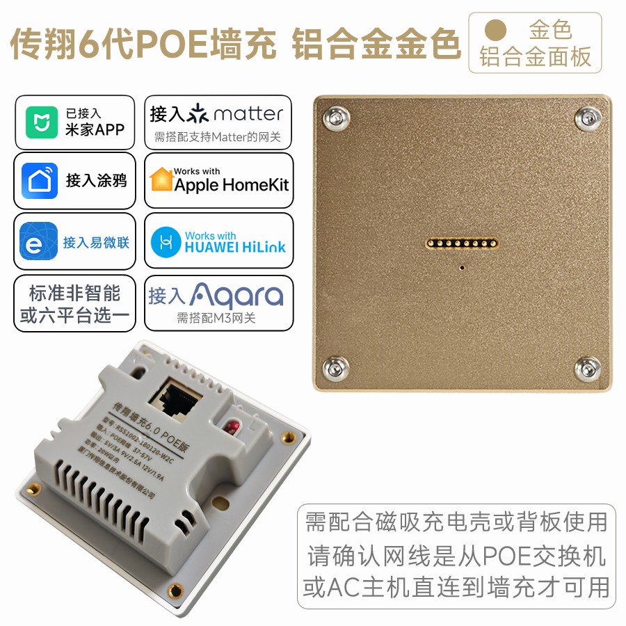 仅POE墙充底座 需配合传翔充电壳使用 接入米家蓝牙mesh2.0 支持QC快充标准