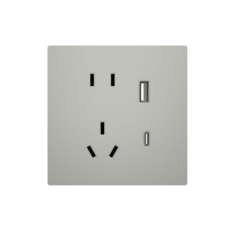 YL-Z1五孔USB+Type-C插座-普通墙插-25版-10A-20W快充-灰色